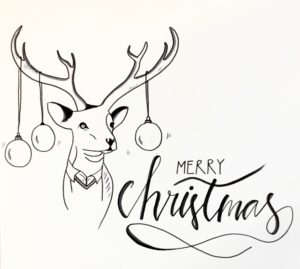 Das erste Bild ist ein Hirsch in festlicher Kleidung. Der Hirsch ist dieses Jahr sehr dominant bei der Weihnachtsdeko, somit gehört er auch bei mir auf die Pakete.